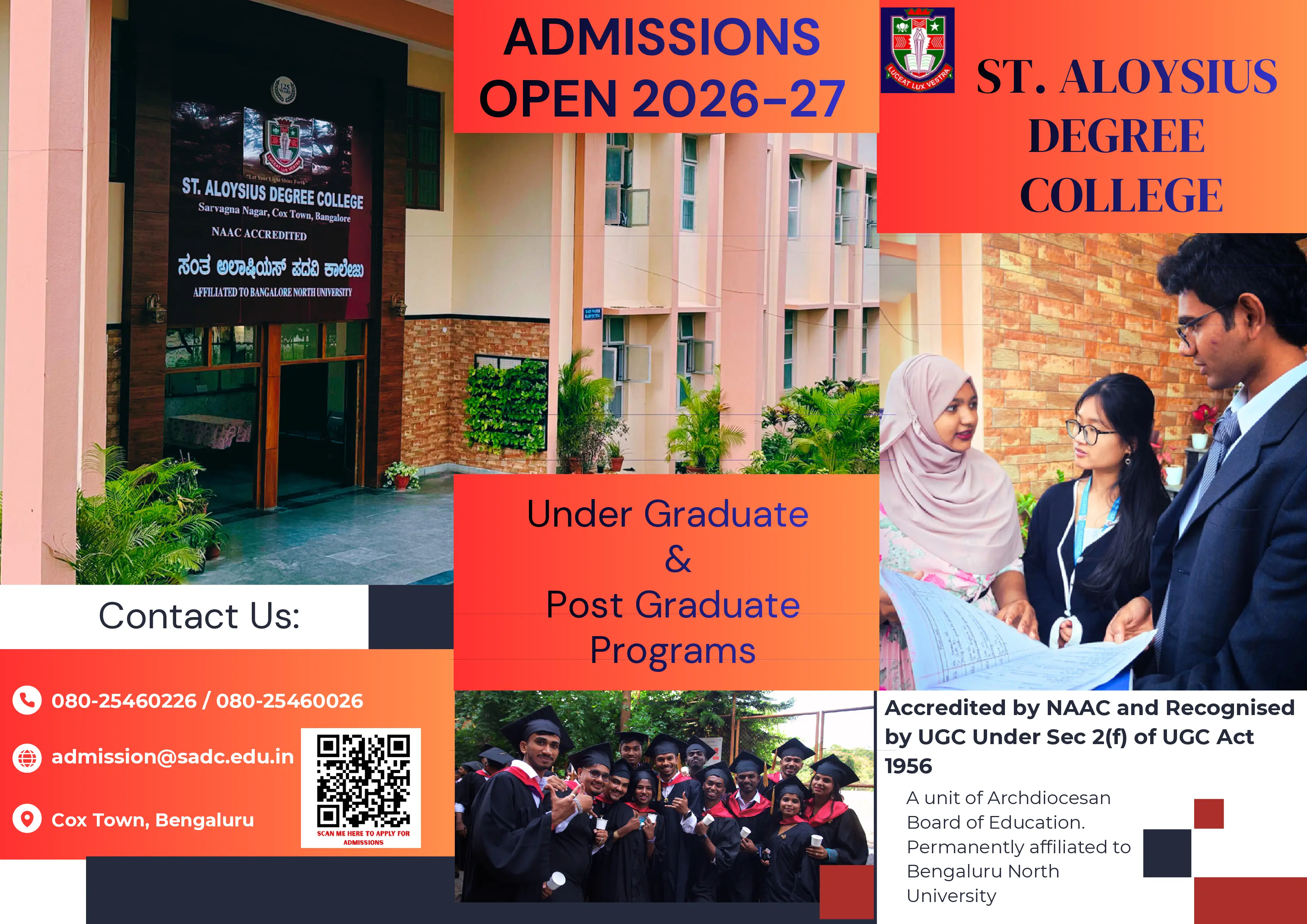 St. Aloysius Degree College, located in Cox Town, Bengaluru, is a reputed institution offering holistic and value-based education. Established in 2008, the college provides Pre-University, Undergraduate, and Postgraduate programmes. We follow a student-centred approach that focuses on academic excellence, character formation, and personal growth.